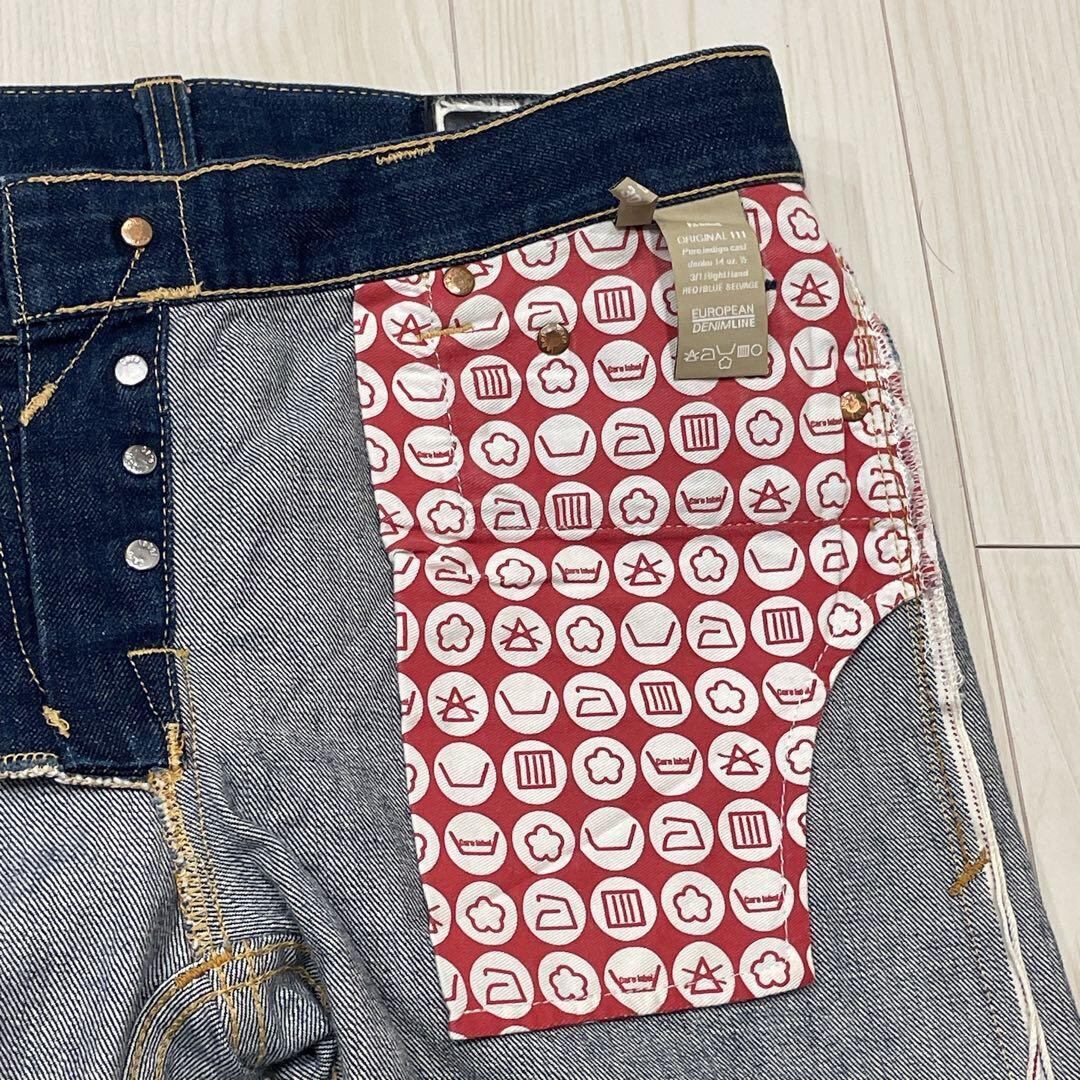 セルビッチ(赤耳)仕様の本格デニムで、細部まで丁寧に作り込まれています。