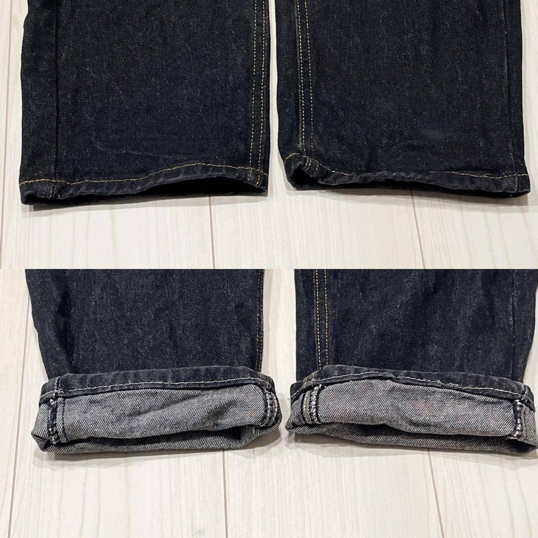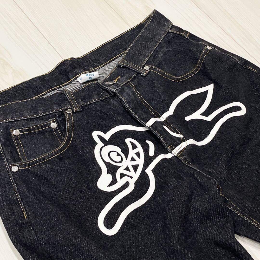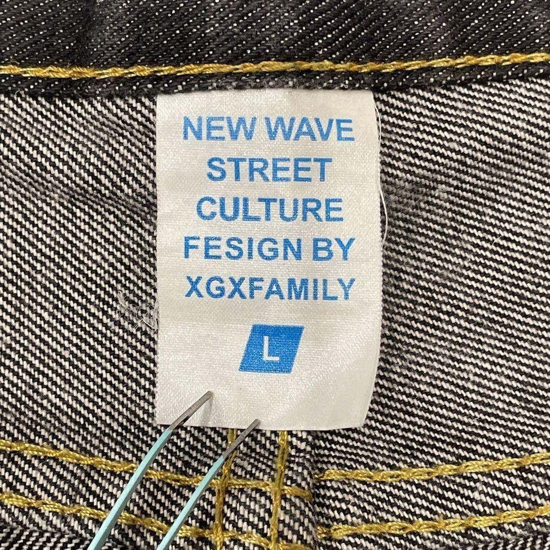 美品 デニム ジーンズ ストレート Lサイズ 大きめ プリント ブラック系