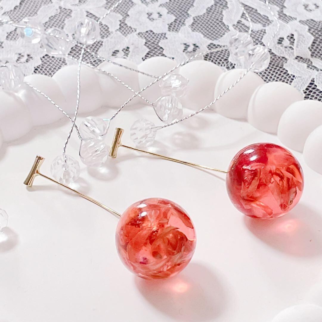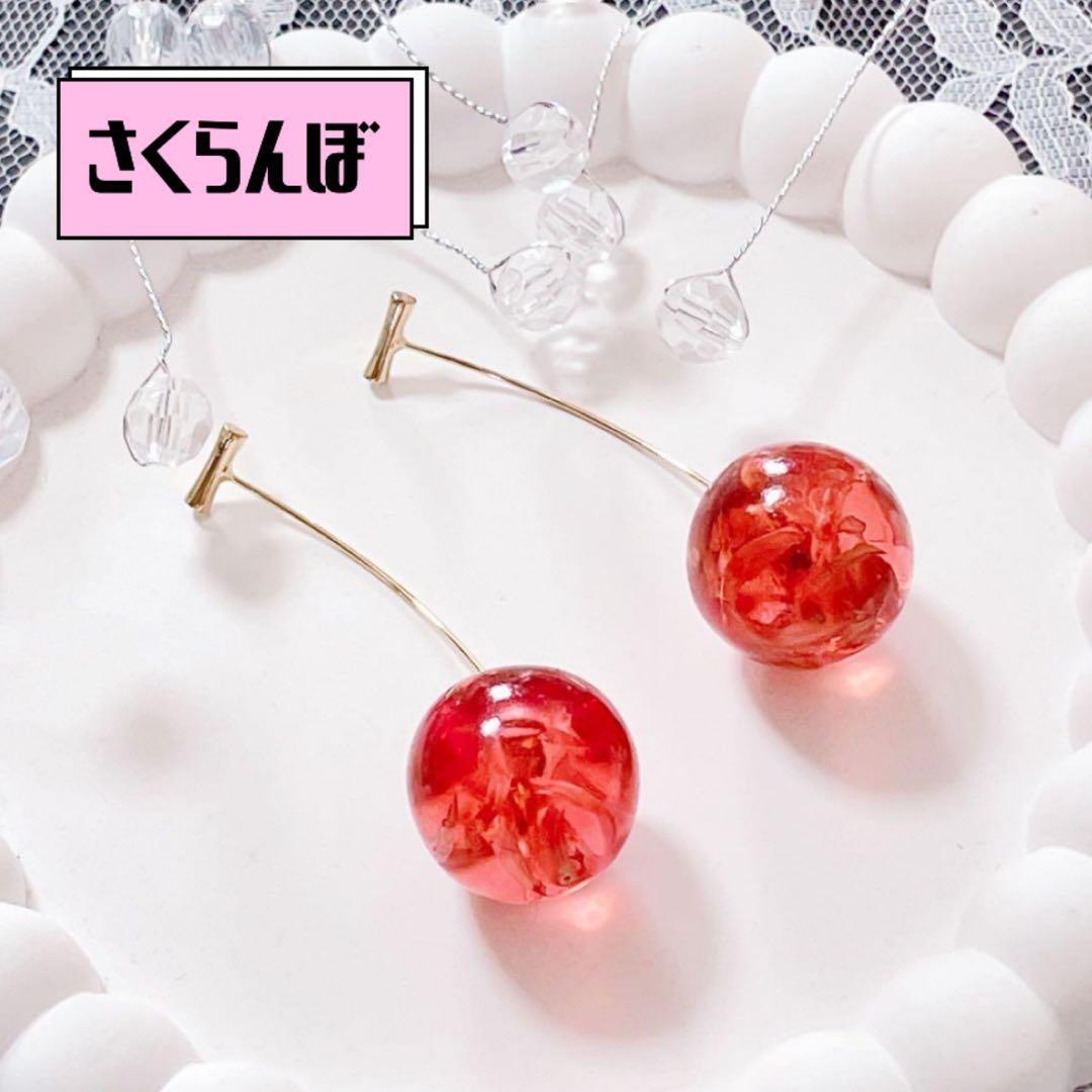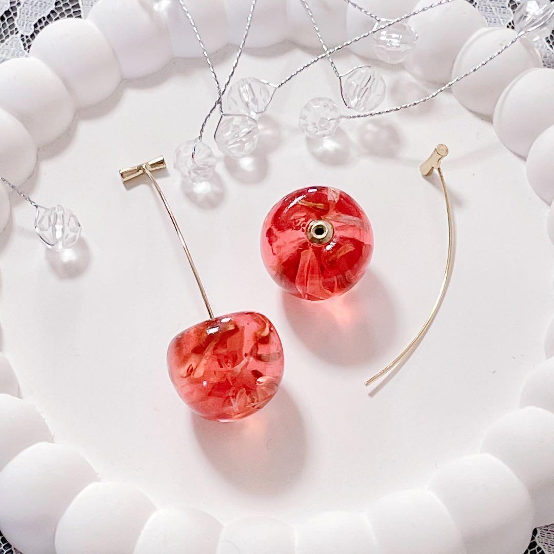 チェリー ピアス 高級感 大ぶり おしゃれ ゴールド 揺れる 上品 クリア 人気