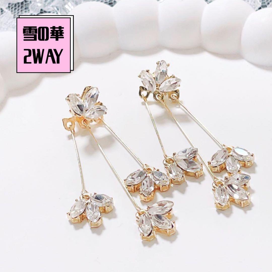 雪の華 ピアス CZダイヤ フラワー 高級感 揺れる 大ぶり キラキラ 2WAY