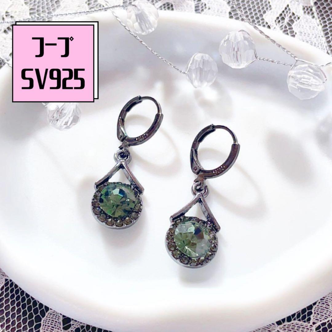 ピアス SV925 フープ ブラック 揺れる CZダイヤ 高級感 パーティ 上品