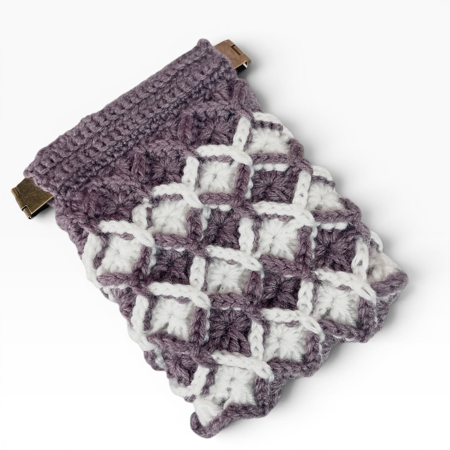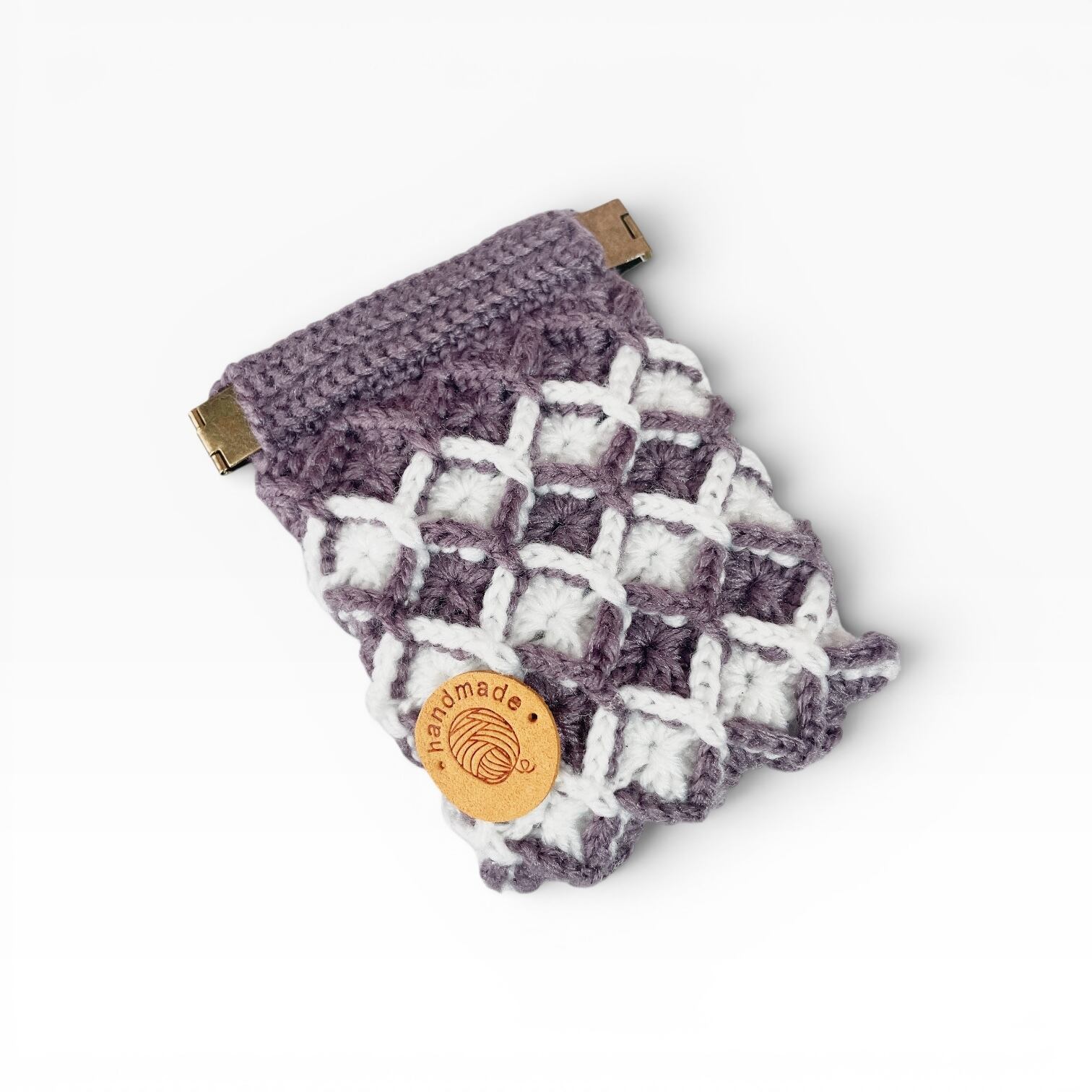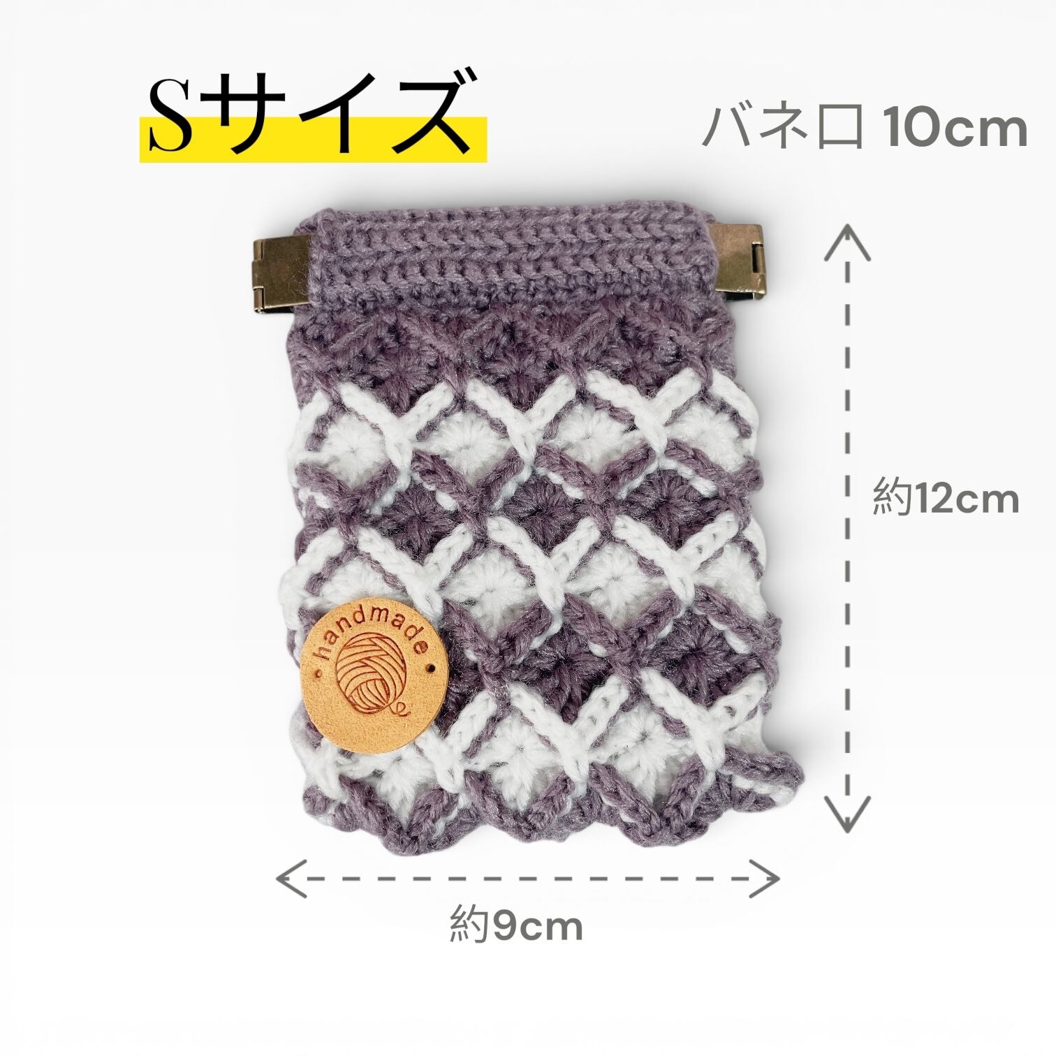 アメジストカラー │ バネ口ポーチ │ ダイヤモンドステッチ │ 手編み │ かぎ針編み │ 小物入れ
