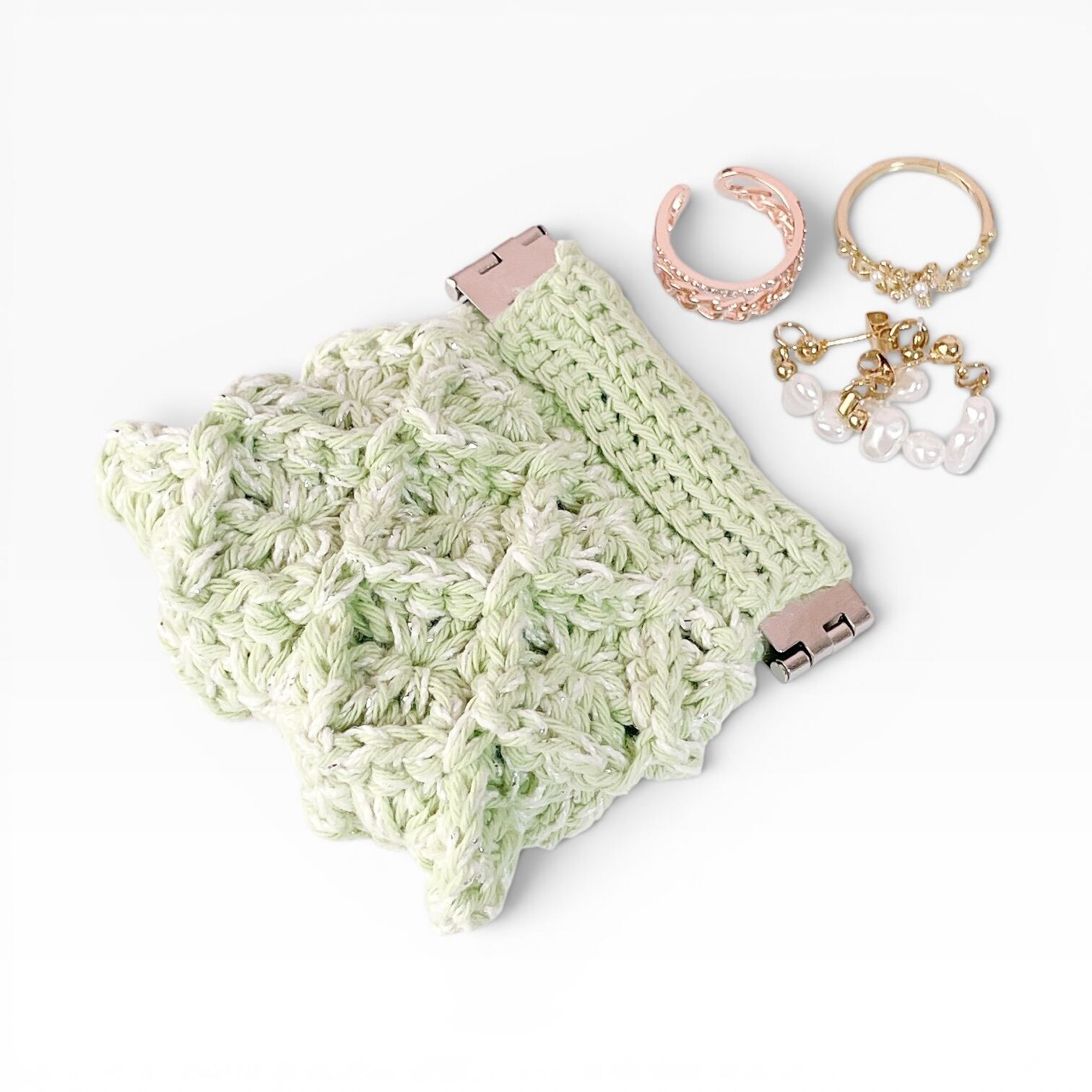 翡翠カラー │ ミニポーチ │ダイヤモンドステッチ │ バネ口 │ SSサイズ │ かぎ針編み │ 小物入れ