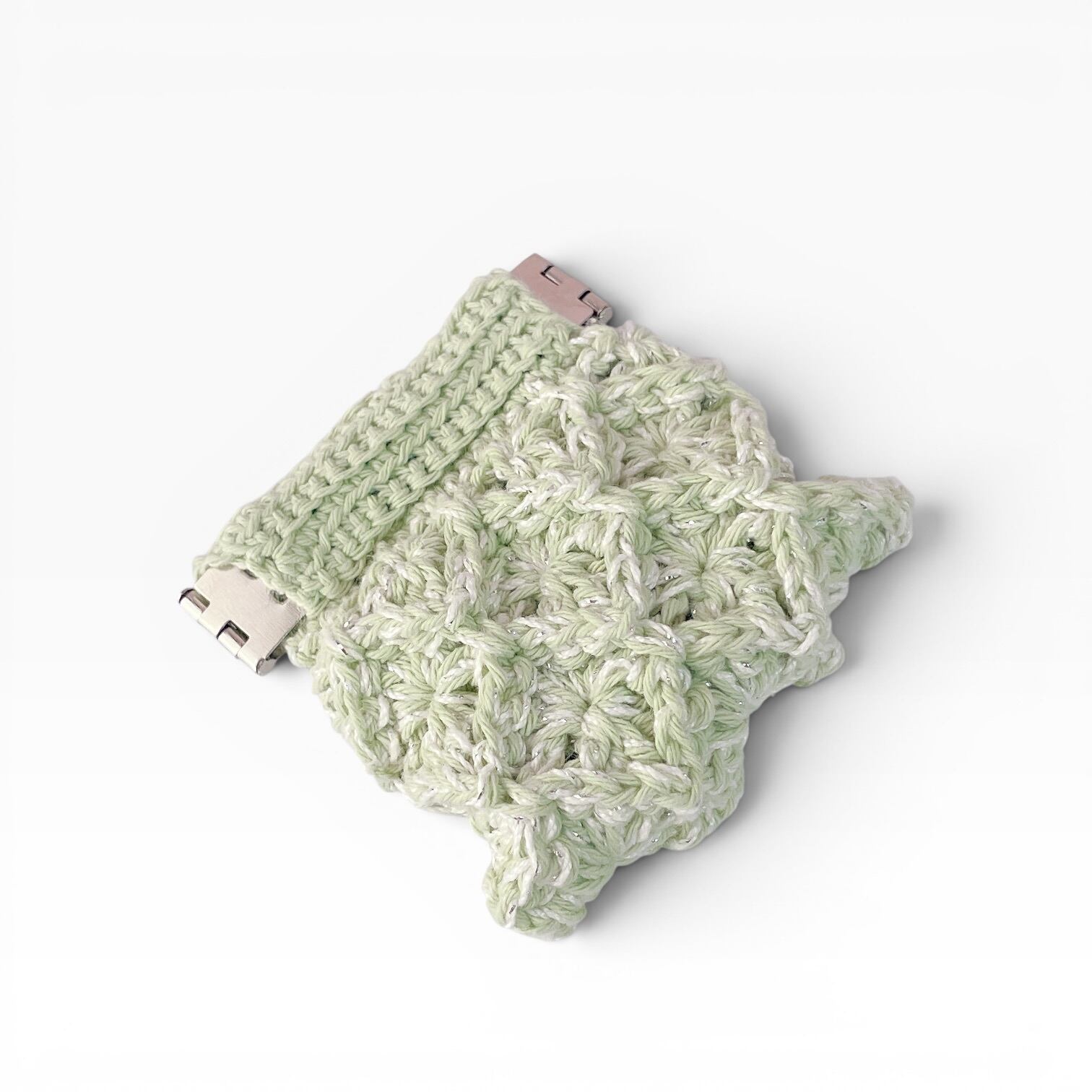 やさしい翡翠カラーをイメージして編み上げた、